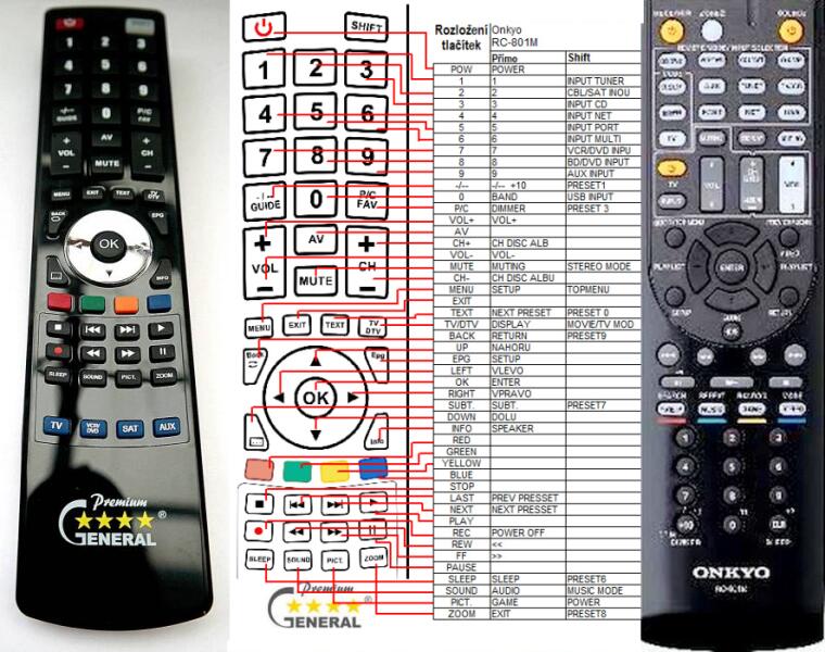 Helyettesítő távirányító ONKYO RC-801M (RC801M) - 100%-os 1:1 arányú helyettesítője az eredeti távirányítónak. A távirányító a ONKYO: TXSR705, HTR990, TX-NR509, TX-NR609, TX-NR616, TX-NR709, TX-SR509, TX-SR705, TXNR509, TXNR579, TXNR609, TXNR616, TXNR709, TXSR509. (Előfordulhat, hogy nem minden kompatibilis modell szerepel a listában. Ha nem biztos benne, csak adja meg a kész