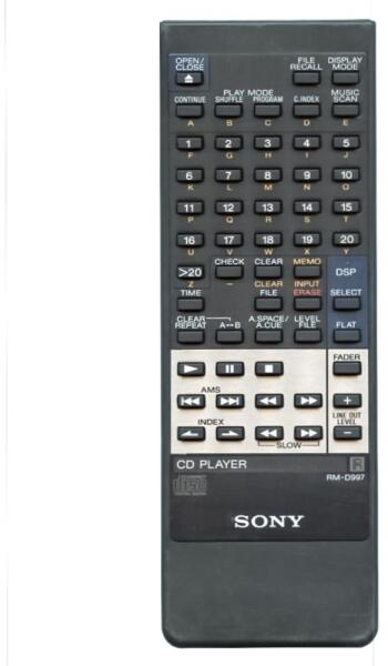 Helyettesítő távirányító SONY RM-D997 (RMD997) - 100%-os 1:1 arányú helyettesítője az eredeti távirányítónak. A távirányító a SONY:CDP-997, CDP997. (Előfordulhat, hogy nem minden kompatibilis modell szerepel a listában. Ha nem biztos benne, csak adja meg a készülékmodelljét (online chat-en vagy e-mailben), és mi azonnal ellenőrizzük, if kompatibilis-e az Ön készülék