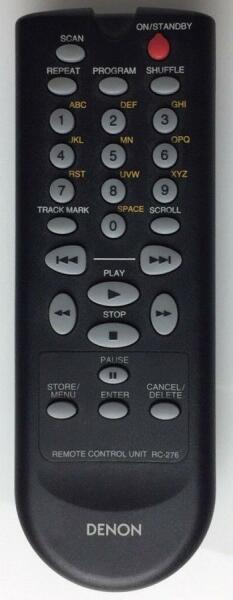 Az eredeti 1:1 arányú duplikátuma távirányító DENON RC-276 (RC276). A távirányító a DENON:CDR-1000, CDR1000. (Előfordulhat, hogy nem minden kompatibilis modell szerepel a listában. Ha nem biztos benne, csak adja meg a készülékmodelljét (online chat-en vagy e-mailben), és mi azonnal ellenőrizzük, if kompatibilis-e az Ön készülékével. Az ellenőrzött kompatibilitást mi gar