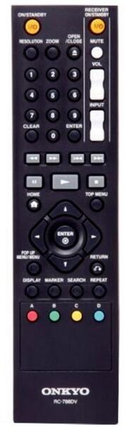 Helyettesítő távirányító ONKYO RC-788DV (RC788DV) - 100%-os 1:1 arányú helyettesítője az eredeti távirányítónak. A távirányító a ONKYO:BD-SP308, BDSP308. (Előfordulhat, hogy nem minden kompatibilis modell szerepel a listában. Ha nem biztos benne, csak adja meg a készülékmodelljét (online chat-en vagy e-mailben), és mi azonnal ellenőrizzük, if kompatibilis-e az Ön kész