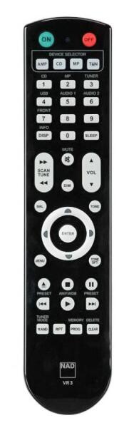 Helyettesítő távirányító NAD VR3 - 100%-os 1:1 arányú helyettesítője az eredeti távirányítónak. A távirányító a NAD:VISO THREE, VR3. (Előfordulhat, hogy nem minden kompatibilis modell szerepel a listában. Ha nem biztos benne, csak adja meg a készülékmodelljét (online chat-en vagy e-mailben), és mi azonnal ellenőrizzük, if kompatibilis-e az Ön készülékével. Az ellen