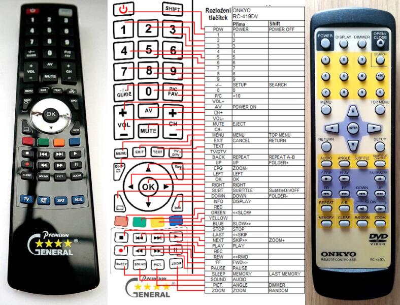 Helyettesítő távirányító ONKYO RC-419DV (RC419DV) - 100%-os 1:1 arányú helyettesítője az eredeti távirányítónak. A távirányító a ONKYO:DV-S535. (Előfordulhat, hogy nem minden kompatibilis modell szerepel a listában. Ha nem biztos benne, csak adja meg a készülékmodelljét (online chat-en vagy e-mailben), és mi azonnal ellenőrizzük, if kompatibilis-e az Ön készülékével