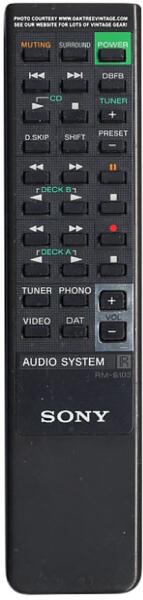 Helyettesítő távirányító SONY RM-S103 (RMS103) - 100%-os 1:1 arányú helyettesítője az eredeti távirányítónak. A távirányító a SONY:STR-AV23, STR-AV270, STR-AV320, STR-AV720, STR-D311, STR-D390, STR-GR511, STR-GX390, STR-GX4, STR-GX40E, STR-GX40ES, STR-GX47E, STR-GX47ES, STR-GX49ES, STR-GX5, STR-GX590, STR-GX707ES, STR-V770, STRAV24, STRAV370X, STRAV570X, STRD311, STRD390, STRGR51