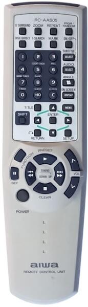 Helyettesítő távirányító AIWA RC-AAS05 (RCAAS05) - 100%-os 1:1 arányú helyettesítője az eredeti távirányítónak. A távirányító a AIWA:CX-NDV120EZ, CXNDV120EZ. (Előfordulhat, hogy nem minden kompatibilis modell szerepel a listában. Ha nem biztos benne, csak adja meg a készülékmodelljét (online chat-en vagy e-mailben), és mi azonnal ellenőrizzük, if kompatibilis-e az Ön k