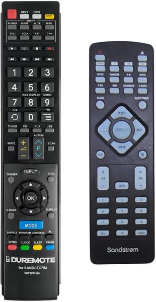 Az eredeti 1:1 arányú duplikátuma távirányító Sandstrom SHFTPPH10. A távirányító General Duremote pontosan ugyanazokkal a funkciókkal és gombnevekkel rendelkezik mint az eredeti távirányító. Nincs szükség beállításra és nincs szükség kódokra, csak helyezze bele az elemeket, és máris használható a fent felsorolt modellekkel. A távirányító ebben a regisztrált márk