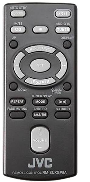 Helyettesítő távirányító JVC RM-SUXGP5R (RMSUXGP5R) - 100%-os 1:1 arányú helyettesítője az eredeti távirányítónak. A távirányító a JVC:UX-GP5. (Előfordulhat, hogy nem minden kompatibilis modell szerepel a listában. Ha nem biztos benne, csak adja meg a készülékmodelljét (online chat-en vagy e-mailben), és mi azonnal ellenőrizzük, if kompatibilis-e az Ön készülékével.