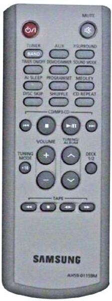 Helyettesítő távirányító SAMSUNG AH59-01159M (AH5901159M) - 100%-os 1:1 arányú helyettesítője az eredeti távirányítónak. A távirányító a SAMSUNG:MAX-ZJ550, MAX-ZJ650, MAX-ZJ730, MAX-ZS940, MAX-ZS950, MAX-ZS990, MM-VS990, MM-ZJ5, MM-ZJ8, MM-ZJ9, MMZJ8RH. (Előfordulhat, hogy nem minden kompatibilis modell szerepel a listában. Ha nem biztos benne, csak adja meg a készülékmodell