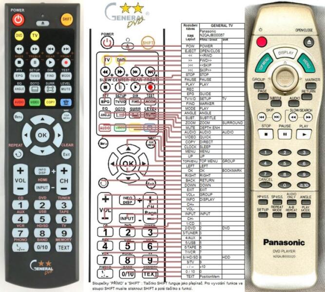 Helyettesítő távirányító PANASONIC N2QAJB000020 - 100%-os 1:1 arányú helyettesítője az eredeti távirányítónak. A távirányító a PANASONIC:DVD-RA71, DVDRA71. (Előfordulhat, hogy nem minden kompatibilis modell szerepel a listában. Ha nem biztos benne, csak adja meg a készülékmodelljét (online chat-en vagy e-mailben), és mi azonnal ellenőrizzük, if kompatibilis-e az Ön kés