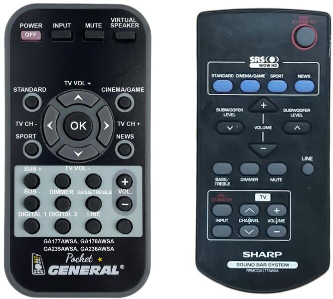 Az eredeti 1:1 arányú duplikátuma távirányító SHARP RRMCGA177AWSA, RRMCGA235AWSA. A távirányító a SHARP:HT-SB200 SOUNDBAR, HT-SB250, HTSB250. (Előfordulhat, hogy nem minden kompatibilis modell szerepel a listában. Ha nem biztos benne, csak adja meg a készülékmodelljét (online chat-en vagy e-mailben), és mi azonnal ellenőrizzük, if kompatibilis-e az Ön készülékével. Az elle