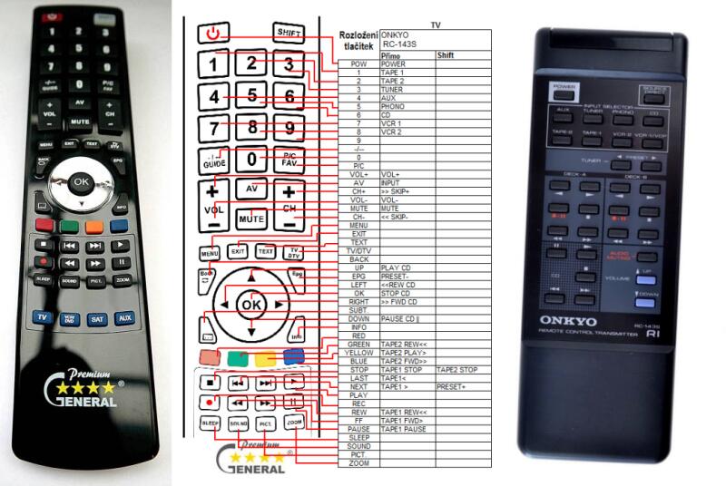 Helyettesítő távirányító ONKYO RC-143S (RC143S) - 100%-os 1:1 arányú helyettesítője az eredeti távirányítónak. A távirányító a ONKYO:A-8630, A-8640, A-8840, A8200, A8630, A8840. (Előfordulhat, hogy nem minden kompatibilis modell szerepel a listában. Ha nem biztos benne, csak adja meg a készülékmodelljét (online chat-en vagy e-mailben), és mi azonnal ellenőrizzük, if komp