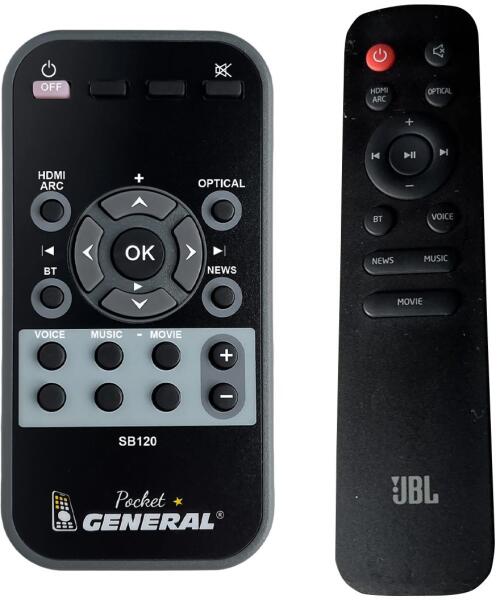 Az eredeti 1:1 arányú duplikátuma távirányító JBL SB 120, SB 170. A távirányító a JBL:SB-120 SOUNDBAR, SB-170, SB120 SOUNDBAR, SB170, SB270, SB370. (Előfordulhat, hogy nem minden kompatibilis modell szerepel a listában. Ha nem biztos benne, csak adja meg a készülékmodelljét (online chat-en vagy e-mailben), és mi azonnal ellenőrizzük, if kompatibilis-e az Ön készülékével. A