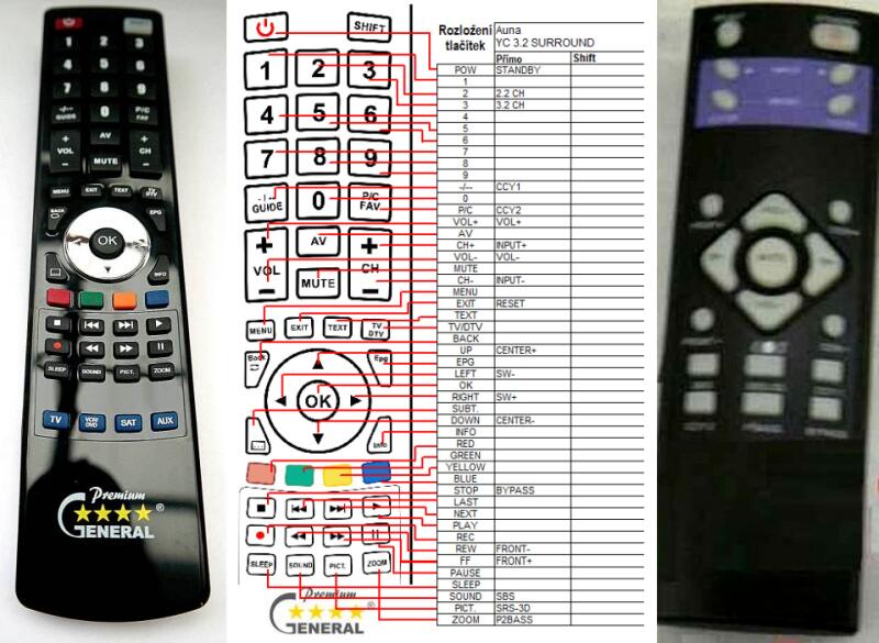 Helyettesítő távirányító AUNA YC 3.2 SURROUND - 100%-os 1:1 arányú helyettesítője az eredeti távirányítónak. A távirányító a AUNA:YC 3.2 SURROUND, YC-3.2, 450 W. (Előfordulhat, hogy nem minden kompatibilis modell szerepel a listában. Ha nem biztos benne, csak adja meg a készülékmodelljét (online chat-en vagy e-mailben), és mi azonnal ellenőrizzük, if kompatibilis-e az Ö