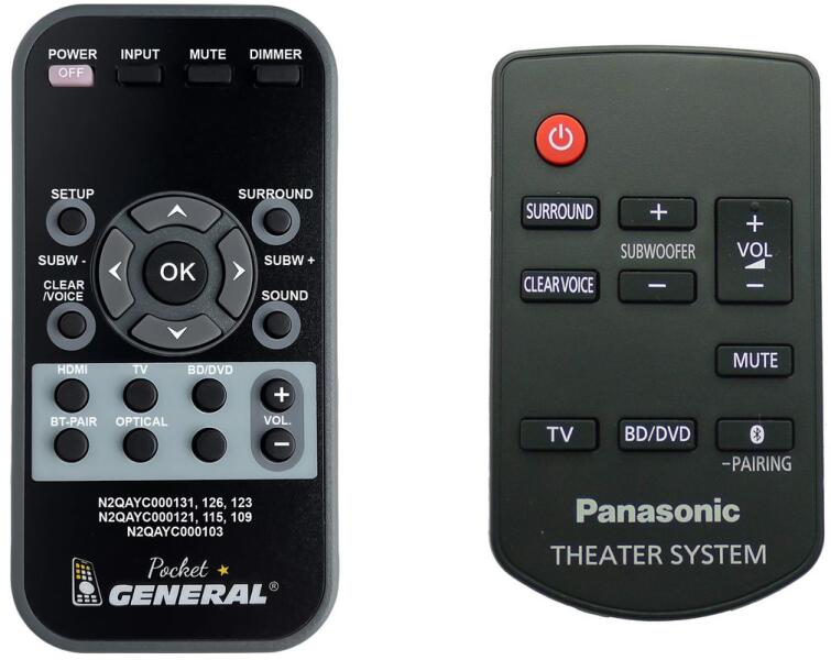 Az eredeti 1:1 arányú duplikátuma távirányító PANASONIC N2QAYC000103. A távirányító a PANASONIC:SC-HTB18, SC-HTB18EB, SCHTB18, SCHTB18EB, SU-HTB18, SUHTB18. (Előfordulhat, hogy nem minden kompatibilis modell szerepel a listában. Ha nem biztos benne, csak adja meg a készülékmodelljét (online chat-en vagy e-mailben), és mi azonnal ellenőrizzük, if kompatibilis-e az Ön készülé
