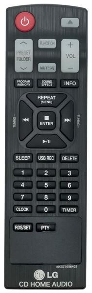 Helyettesítő távirányító LG AKB73656402 - 100%-os 1:1 arányú helyettesítője az eredeti távirányítónak. A távirányító a LG:CM-2630, CM-2820, CM2630, CM2820, FA168. (Előfordulhat, hogy nem minden kompatibilis modell szerepel a listában. Ha nem biztos benne, csak adja meg a készülékmodelljét (online chat-en vagy e-mailben), és mi azonnal ellenőrizzük, if kompatibilis-e az