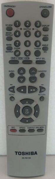 Helyettesítő távirányító TOSHIBA SE-R0159 (SER0159) - 100%-os 1:1 arányú helyettesítője az eredeti távirányítónak. A távirányító a TOSHIBA:MDVD/VCR DUAL DECK SD-36 VESE , MDVD/VCR DUAL DECK SD-36VESE, SD3107E. (Előfordulhat, hogy nem minden kompatibilis modell szerepel a listában. Ha nem biztos benne, csak adja meg a készülékmodelljét (online chat-en vagy e-mailben), és mi