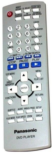 Helyettesítő távirányító PANASONIC EUR7631200 - 100%-os 1:1 arányú helyettesítője az eredeti távirányítónak. A távirányító a PANASONIC:DVD-S42, DVD-S42E-K, DVD-S42E-S, DVD-S52, DVD-S52E-K, DVDS42, DVDS52. (Előfordulhat, hogy nem minden kompatibilis modell szerepel a listában. Ha nem biztos benne, csak adja meg a készülékmodelljét (online chat-en vagy e-mailben), és mi azon