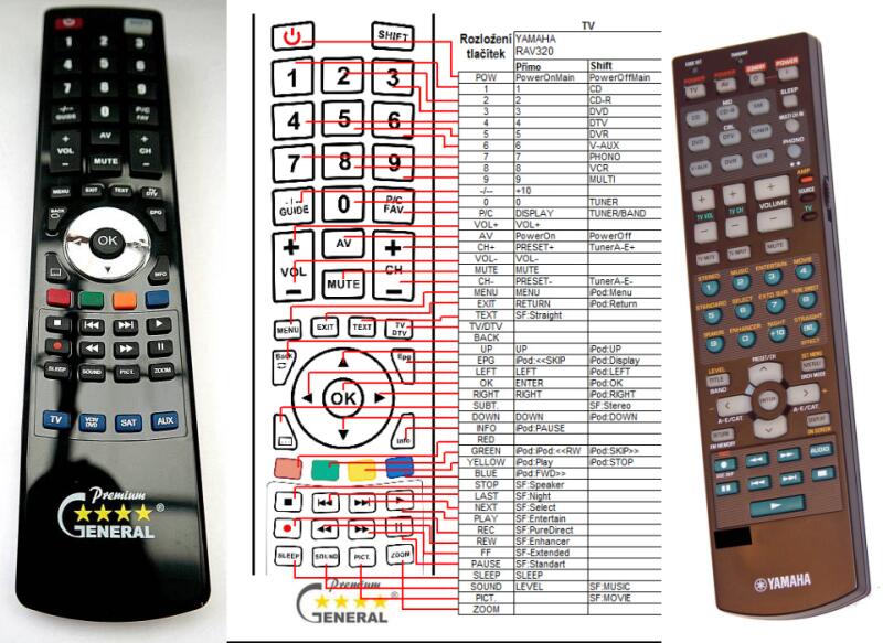 Helyettesítő távirányító YAMAHA RAV320 - 100%-os 1:1 arányú helyettesítője az eredeti távirányítónak. A távirányító a YAMAHA:HTR-5960, HTR-5960BL, HTR-5960SL, RX-V659. (Előfordulhat, hogy nem minden kompatibilis modell szerepel a listában. Ha nem biztos benne, csak adja meg a készülékmodelljét (online chat-en vagy e-mailben), és mi azonnal ellenőrizzük, if kompatibilis-e