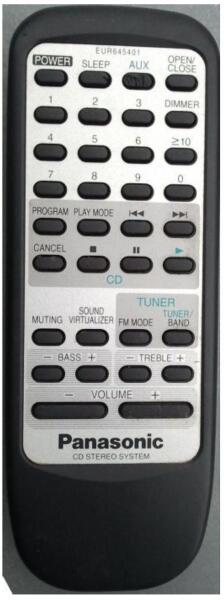 Helyettesítő távirányító PANASONIC EUR645401 - 100%-os 1:1 arányú helyettesítője az eredeti távirányítónak. A távirányító a PANASONIC:SA-PM01, SAPM01, SC-PM01, SCPM01. (Előfordulhat, hogy nem minden kompatibilis modell szerepel a listában. Ha nem biztos benne, csak adja meg a készülékmodelljét (online chat-en vagy e-mailben), és mi azonnal ellenőrizzük, if kompatibilis-e