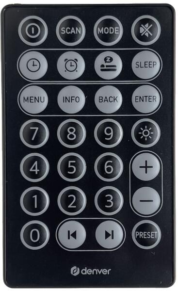 Helyettesítő távirányító DENVER DAB-48 (DAB48) - 100%-os 1:1 arányú helyettesítője az eredeti távirányítónak. A távirányító a DENVER:DAB48. (Előfordulhat, hogy nem minden kompatibilis modell szerepel a listában. Ha nem biztos benne, csak adja meg a készülékmodelljét (online chat-en vagy e-mailben), és mi azonnal ellenőrizzük, if kompatibilis-e az Ön készülékével. Az