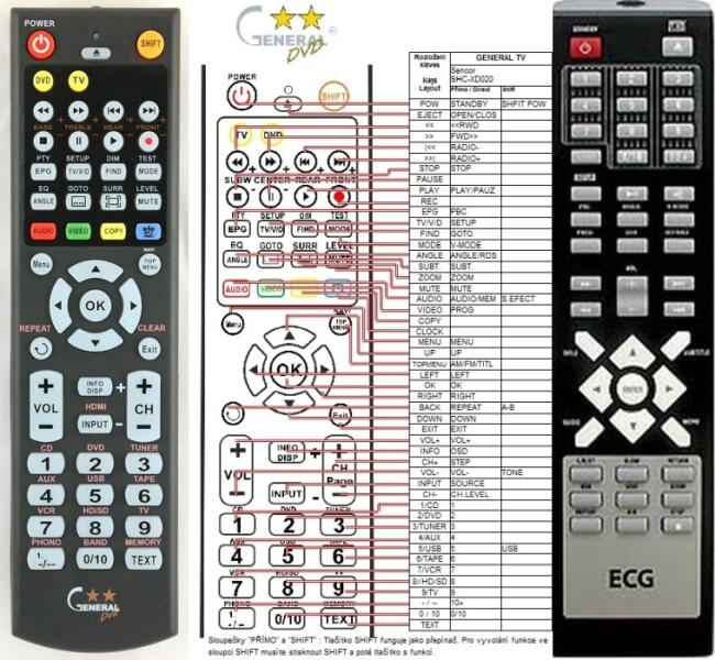 Helyettesítő távirányító ECG DVD4517HDMI - 100%-os 1:1 arányú helyettesítője az eredeti távirányítónak. A távirányító a ECG:DV5H835, DVD-4517 DMI, MSD701, MSD761 DRSU. (Előfordulhat, hogy nem minden kompatibilis modell szerepel a listában. Ha nem biztos benne, csak adja meg a készülékmodelljét (online chat-en vagy e-mailben), és mi azonnal ellenőrizzük, if kompatibilis-e
