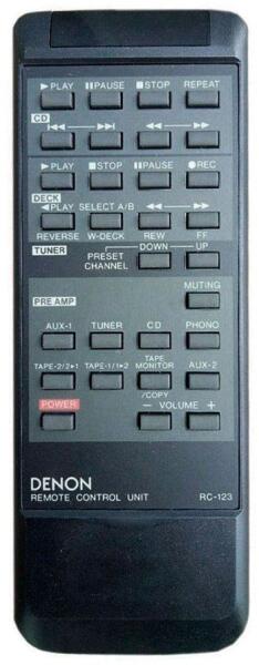 Helyettesítő távirányító DENON RC-123 (RC123) - 100%-os 1:1 arányú helyettesítője az eredeti távirányítónak. A távirányító a DENON:PRA-1500, PRA1500KE2. (Előfordulhat, hogy nem minden kompatibilis modell szerepel a listában. Ha nem biztos benne, csak adja meg a készülékmodelljét (online chat-en vagy e-mailben), és mi azonnal ellenőrizzük, if kompatibilis-e az Ön készü
