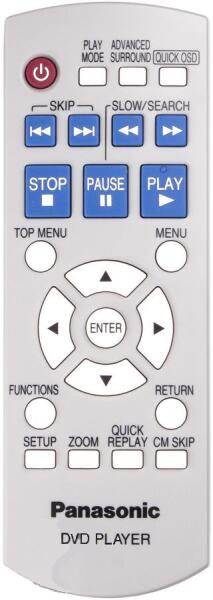 Helyettesítő távirányító PANASONIC N2QAYB000011 - 100%-os 1:1 arányú helyettesítője az eredeti távirányítónak. A távirányító a PANASONIC:DVD-S1, DVD-S32, DVDS1. (Előfordulhat, hogy nem minden kompatibilis modell szerepel a listában. Ha nem biztos benne, csak adja meg a készülékmodelljét (online chat-en vagy e-mailben), és mi azonnal ellenőrizzük, if kompatibilis-e az Ön
