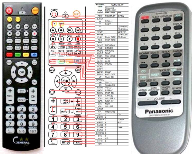 Az eredeti 1:1 arányú duplikátuma távirányító PANASONIC EUR644862. A távirányító a PANASONIC:SA-PM20, SA-PM22, SAPM20, SAPM22, SC-PM20, SC-PM22, SCPM20, SCPM22. (Előfordulhat, hogy nem minden kompatibilis modell szerepel a listában. Ha nem biztos benne, csak adja meg a készülékmodelljét (online chat-en vagy e-mailben), és mi azonnal ellenőrizzük, if kompatibilis-e az Ön kész