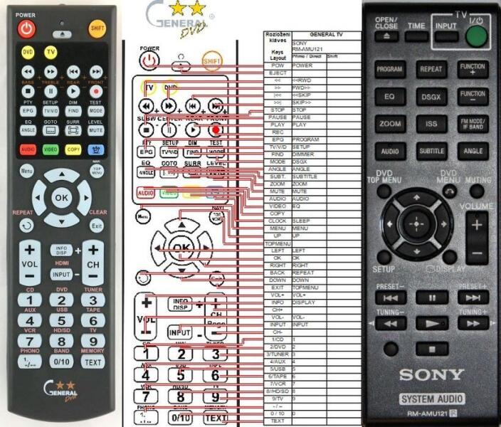 Helyettesítő távirányító SONY RM-AMU121 (RMAMU121) - 100%-os 1:1 arányú helyettesítője az eredeti távirányítónak. A távirányító a SONY:CMT-DX400, CMT-DX400A, HCD-DX400, HCD-DX400A. (Előfordulhat, hogy nem minden kompatibilis modell szerepel a listában. Ha nem biztos benne, csak adja meg a készülékmodelljét (online chat-en vagy e-mailben), és mi azonnal ellenőrizzük, if k