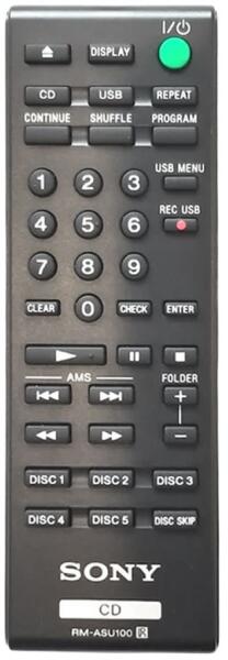 Helyettesítő távirányító SONY RM-ASU100 (RMASU100) - 100%-os 1:1 arányú helyettesítője az eredeti távirányítónak. A távirányító a SONY:CDP-CE500, CDPCE500. (Előfordulhat, hogy nem minden kompatibilis modell szerepel a listában. Ha nem biztos benne, csak adja meg a készülékmodelljét (online chat-en vagy e-mailben), és mi azonnal ellenőrizzük, if kompatibilis-e az Ön kés