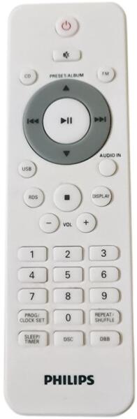 Helyettesítő távirányító PHILIPS MCM2005 - 100%-os 1:1 arányú helyettesítője az eredeti távirányítónak. A távirányító a PHILIPS:MCM-2005, MCM2005, MCM2005/12. (Előfordulhat, hogy nem minden kompatibilis modell szerepel a listában. Ha nem biztos benne, csak adja meg a készülékmodelljét (online chat-en vagy e-mailben), és mi azonnal ellenőrizzük, if kompatibilis-e az Ön k