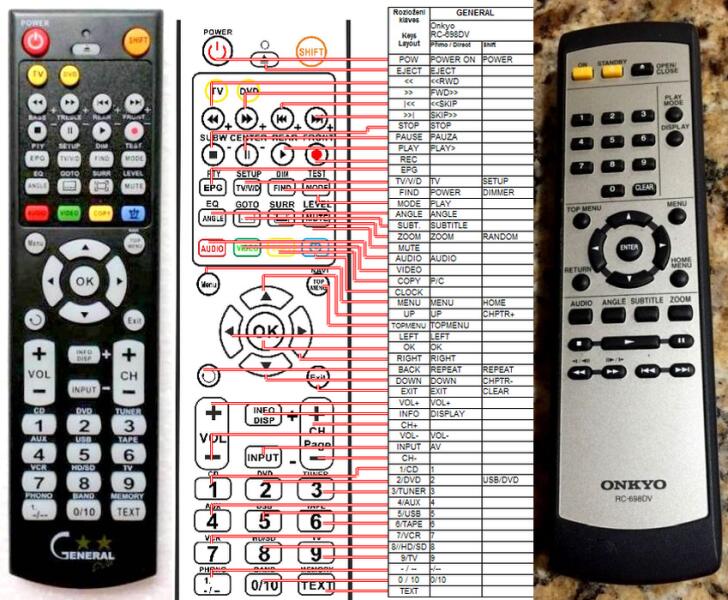 Helyettesítő távirányító ONKYO RC-698DV (RC698DV) - 100%-os 1:1 arányú helyettesítője az eredeti távirányítónak. A távirányító a ONKYO:DV-SP405, DVSP405. (Előfordulhat, hogy nem minden kompatibilis modell szerepel a listában. Ha nem biztos benne, csak adja meg a készülékmodelljét (online chat-en vagy e-mailben), és mi azonnal ellenőrizzük, if kompatibilis-e az Ön kész