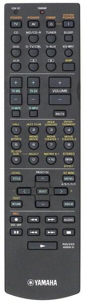 Az eredeti 1:1 arányú duplikátuma távirányító YAMAHA RAV243. A távirányító a YAMAHA:HTR-5550RDS, RX-V530RDS. (Előfordulhat, hogy nem minden kompatibilis modell szerepel a listában. Ha nem biztos benne, csak adja meg a készülékmodelljét (online chat-en vagy e-mailben), és mi azonnal ellenőrizzük, if kompatibilis-e az Ön készülékével. Az ellenőrzött kompatibilitást mi gar