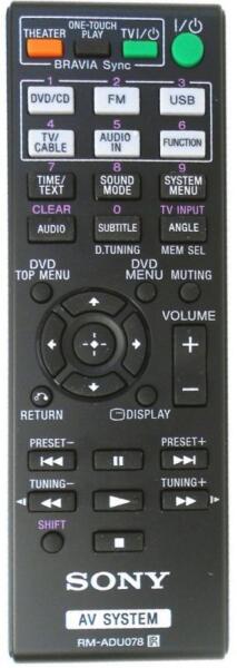 Vadonatúj eredeti távirányító SONY RM-ADU078 (RMADU078). A távirányító a SONY:DAV-DZ170, DAV-DZ171, DAV-DZ175, DAV-DZ330, DAV-DZ340, DAV-DZ710, DAV-DZ740, DAV-TZ210, DAV-TZ215, DAV-TZ230, DAV-TZ340, DAVTZ715, HBD-DZ170, HBD-DZ171, HBD-DZ175, HBD-DZ330, HBD-F310, HBD-TZ135, HCD-TZ230, HDB-DZ740, HDBDZ740. (Előfordulhat, hogy nem minden kompatibilis modell szerepel a listában. Ha nem bizt