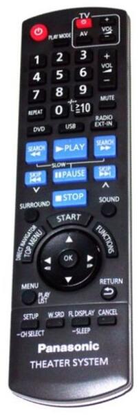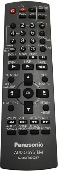 Helyettesítő távirányító PANASONIC N2QAYB000267 - 100%-os 1:1 arányú helyettesítője az eredeti távirányítónak. A távirányító a PANASONIC:SA-VK670, SAVK670, SC-VK670, SCVK670. (Előfordulhat, hogy nem minden kompatibilis modell szerepel a listában. Ha nem biztos benne, csak adja meg a készülékmodelljét (online chat-en vagy e-mailben), és mi azonnal ellenőrizzük, if kompati