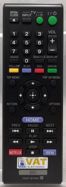Vadonatúj helyettesítő távirányító SONY RMT-B118A (RMTB118A). A távirányító a SONY:A, BDP-BX110, BDP-BX18, BDP-BX310, BDP-BX3100, BDP-BX39, BDP-BX510, BDP-BX59, BDP-S1100, BDP-S185, BDP-S390, BDP-S4100, BDP-S5100, BDP-S590. (Előfordulhat, hogy nem minden kompatibilis modell szerepel a listában. Ha nem biztos benne, csak adja meg a készülékmodelljét (online chat-en vagy e-mailben),