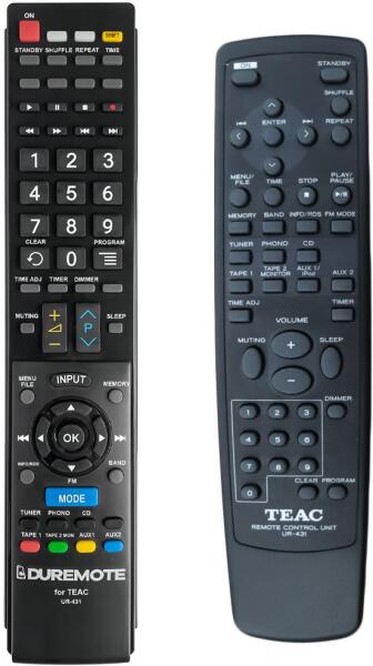 Az eredeti 1:1 arányú duplikátuma távirányító TEAC UR-431 (UR431). A távirányító a TEAC:A-R360, A-R500, A-R600, A-R610, A-R630, A-R650, AR360, AR500, AR600, AR610, AR630, AR650. (Előfordulhat, hogy nem minden kompatibilis modell szerepel a listában. Ha nem biztos benne, csak adja meg a készülékmodelljét (online chat-en vagy e-mailben), és mi azonnal ellenőrizzük, if kompatibili