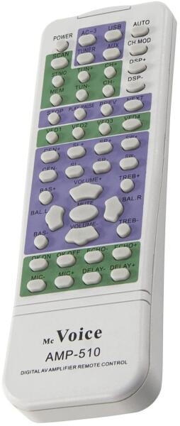 Helyettesítő távirányító McVOICE AMP-510HC/B (AMP510HC/B) - 100%-os 1:1 arányú helyettesítője az eredeti távirányítónak. A távirányító a McVOICE:AMP-510HC/B. (Előfordulhat, hogy nem minden kompatibilis modell szerepel a listában. Ha nem biztos benne, csak adja meg a készülékmodelljét (online chat-en vagy e-mailben), és mi azonnal ellenőrizzük, if kompatibilis-e az Ön k