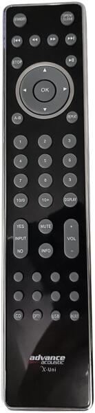 Helyettesítő távirányító ADVANCE ACOUSTIC X-UNI (XUNI) - 100%-os 1:1 arányú helyettesítője az eredeti távirányítónak. A távirányító a ADVANCE ACOUSTIC:X-UNI, XUNI. (Előfordulhat, hogy nem minden kompatibilis modell szerepel a listában. Ha nem biztos benne, csak adja meg a készülékmodelljét (online chat-en vagy e-mailben), és mi azonnal ellenőrizzük, if kompatibilis-e az