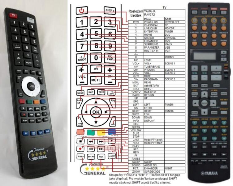 Helyettesítő távirányító YAMAHA RAV372 - 100%-os 1:1 arányú helyettesítője az eredeti távirányítónak. A távirányító a YAMAHA:DSP-AX763, DSP-AX863SE, RX-V2600, RX-V3800, RX-V4600, RX-V663. (Előfordulhat, hogy nem minden kompatibilis modell szerepel a listában. Ha nem biztos benne, csak adja meg a készülékmodelljét (online chat-en vagy e-mailben), és mi azonnal ellenőrizzü
