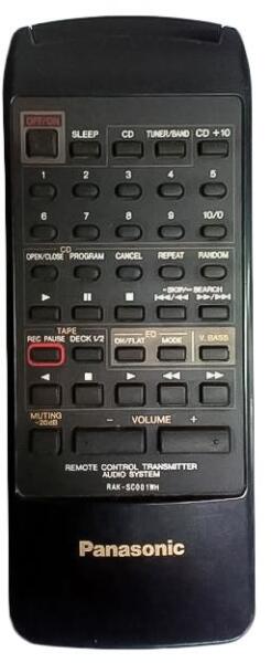 Helyettesítő távirányító PANASONIC RAK-SC001WH (RAKSC001WH) - 100%-os 1:1 arányú helyettesítője az eredeti távirányítónak. A távirányító a PANASONIC:SA-AX710. (Előfordulhat, hogy nem minden kompatibilis modell szerepel a listában. Ha nem biztos benne, csak adja meg a készülékmodelljét (online chat-en vagy e-mailben), és mi azonnal ellenőrizzük, if kompatibilis-e az Ön k