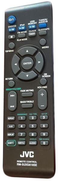 Helyettesítő távirányító JVC RM-SUXG616SE (RMSUXG616SE) - 100%-os 1:1 arányú helyettesítője az eredeti távirányítónak. A távirányító a JVC:CA-UXG616W, CAUXG616W. (Előfordulhat, hogy nem minden kompatibilis modell szerepel a listában. Ha nem biztos benne, csak adja meg a készülékmodelljét (online chat-en vagy e-mailben), és mi azonnal ellenőrizzük, if kompatibilis-e az Ö