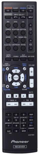 Az eredeti 1:1 arányú duplikátuma távirányító PIONEER AXD7624, AXD7660, AXD7661, AXD7662. A távirányító a PIONEER:VSX-1019, VSX-1022, VSX-42, VSX-422, VSX-521, VSX-527, VSX-819V-K, VSX-822, VSX-827, VSX-925-KS, VSX-D557, VSX1019, VSX1022, VSX42, VSX422, VSX521, VSX527, VSX819VK, VSX822, VSX827, VSXD557. (Előfordulhat, hogy nem minden kompatibilis modell szerepel a listában. Ha nem biz