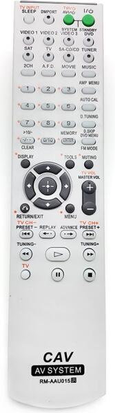 Az eredeti 1:1 arányú duplikátuma távirányító SONY RM-AAU015 (RMAAU015). A távirányító a SONY:STR-DG710, STRDG710, STRKS2000. (Előfordulhat, hogy nem minden kompatibilis modell szerepel a listában. Ha nem biztos benne, csak adja meg a készülékmodelljét (online chat-en vagy e-mailben), és mi azonnal ellenőrizzük, if kompatibilis-e az Ön készülékével. Az ellenőrzött kompat