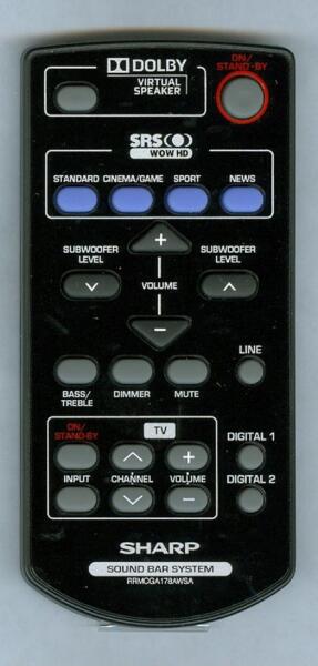 Az eredeti 1:1 arányú duplikátuma távirányító SHARP RRMCGA178AWSA . A távirányító a SHARP:HT-SB300, HTSB300. (Előfordulhat, hogy nem minden kompatibilis modell szerepel a listában. Ha nem biztos benne, csak adja meg a készülékmodelljét (online chat-en vagy e-mailben), és mi azonnal ellenőrizzük, if kompatibilis-e az Ön készülékével. Az ellenőrzött kompatibilitást mi gar