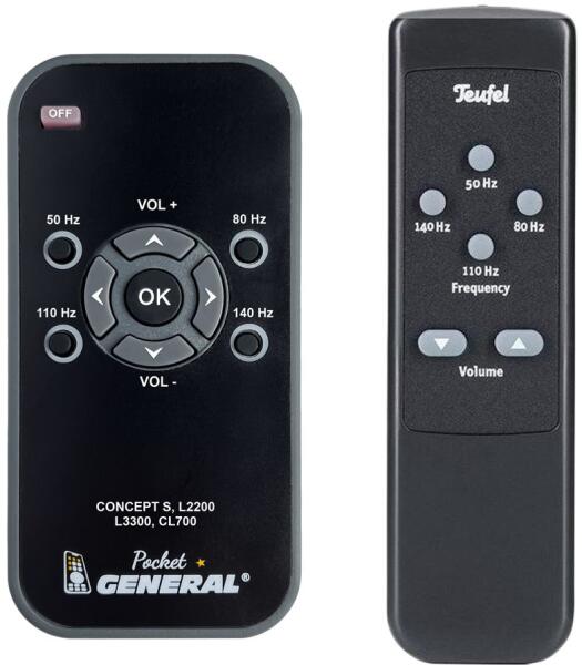 Helyettesítő távirányító TEUFEL Concept S, L2200, L3300, CL700 - 100%-os 1:1 arányú helyettesítője az eredeti távirányítónak. A távirányító a TEUFEL:CL700, CONCEPT S, L2200, L3300. (Előfordulhat, hogy nem minden kompatibilis modell szerepel a listában. Ha nem biztos benne, csak adja meg a készülékmodelljét (online chat-en vagy e-mailben), és mi azonnal ellenőrizzük, if k