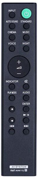 Helyettesítő távirányító SONY RMT-AH411U (RMTAH411U) - 100%-os 1:1 arányú helyettesítője az eredeti távirányítónak. A távirányító a SONY:HT-S100F, HT-S150, HT-SF150, HT-SF200, HTS100F, HTSF150, HTSF200. (Előfordulhat, hogy nem minden kompatibilis modell szerepel a listában. Ha nem biztos benne, csak adja meg a készülékmodelljét (online chat-en vagy e-mailben), és mi azonna