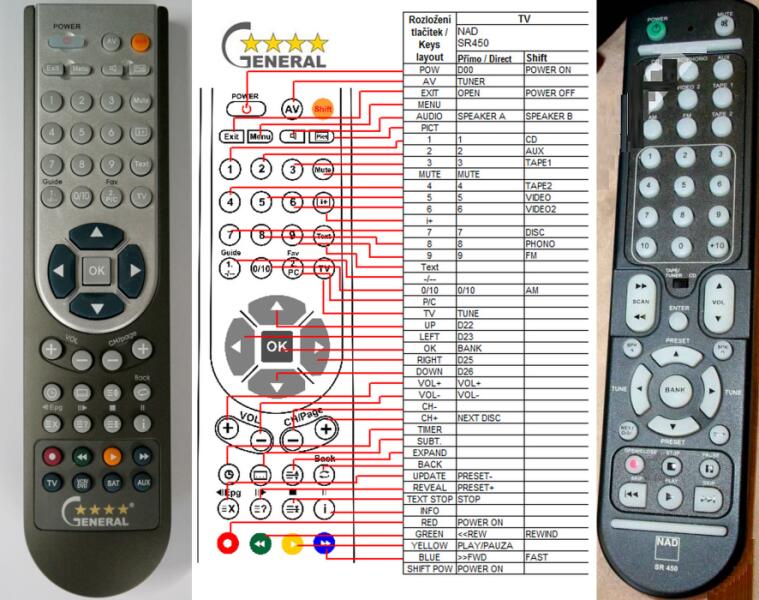Helyettesítő távirányító NAD SR-450 (SR450) - 100%-os 1:1 arányú helyettesítője az eredeti távirányítónak. A távirányító a NAD:SR 450, SR-450, SR450. (Előfordulhat, hogy nem minden kompatibilis modell szerepel a listában. Ha nem biztos benne, csak adja meg a készülékmodelljét (online chat-en vagy e-mailben), és mi azonnal ellenőrizzük, if kompatibilis-e az Ön készülé
