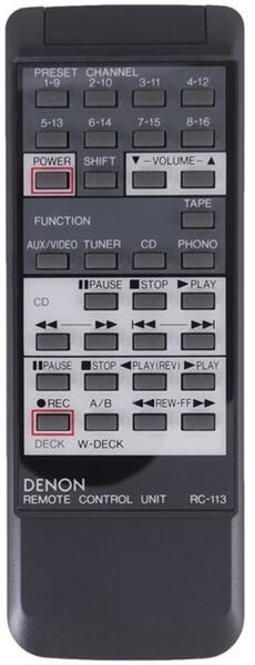 Helyettesítő távirányító DENON RC-113 (RC113) - 100%-os 1:1 arányú helyettesítője az eredeti távirányítónak. A távirányító a DENON:DRA-325R, DRA325R. (Előfordulhat, hogy nem minden kompatibilis modell szerepel a listában. Ha nem biztos benne, csak adja meg a készülékmodelljét (online chat-en vagy e-mailben), és mi azonnal ellenőrizzük, if kompatibilis-e az Ön készülé