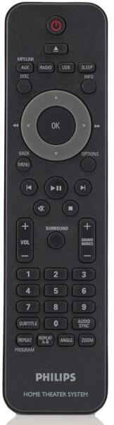 Helyettesítő távirányító PHILIPS 996510011293, RC4741/01 - 100%-os 1:1 arányú helyettesítője az eredeti távirányítónak. A távirányító a PHILIPS:HTS3164, HTS3164/05, HTS3164/12, HTS3367/05, HTS3367/12, HTS3568/05, HTS3568/12, HTS4600/05, HTS4600/12. (Előfordulhat, hogy nem minden kompatibilis modell szerepel a listában. Ha nem biztos benne, csak adja meg a készülékmodelljét