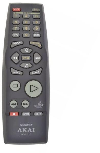 Helyettesítő távirányító AKAI RC-Y171E (RCY171E) - 100%-os 1:1 arányú helyettesítője az eredeti távirányítónak. A távirányító a AKAI:VS-J717EDG-N, VSJ717EDGN. (Előfordulhat, hogy nem minden kompatibilis modell szerepel a listában. Ha nem biztos benne, csak adja meg a készülékmodelljét (online chat-en vagy e-mailben), és mi azonnal ellenőrizzük, if kompatibilis-e az Ön k